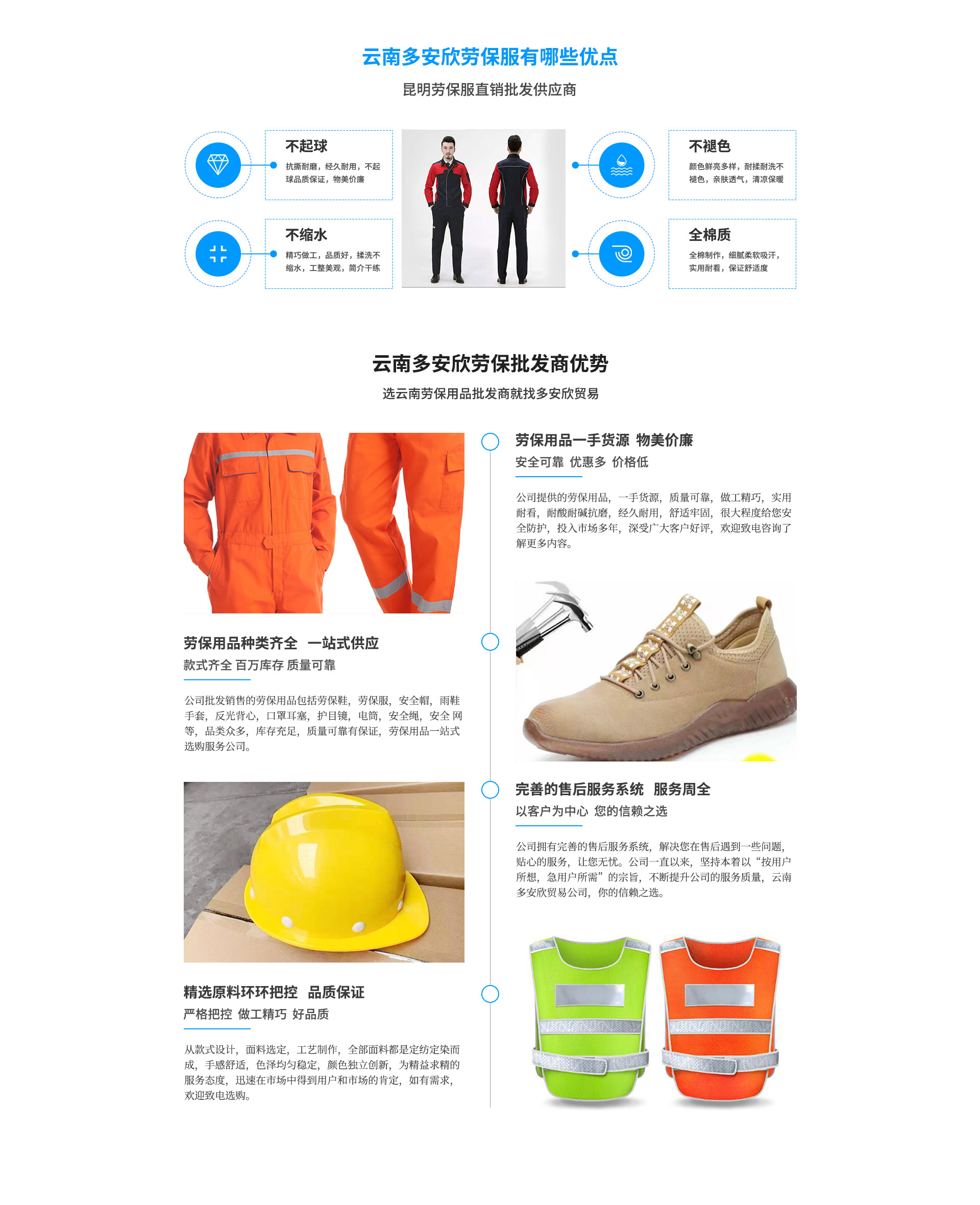 云南多安欣貿(mào)易有限公司位于云南省昆明市官渡區(qū)昌宏路東聚五金建材市場(chǎng)東區(qū)10-10。云南多安欣貿(mào)易有限公司是一家集生產(chǎn)。銷(xiāo)售、批發(fā)為一體的大型勞保用品單位。公司成立18年有余,在這18年里我們憑借我們行業(yè)知識(shí),認(rèn)真的態(tài)度和售后服務(wù),在云南市場(chǎng)迅速崛起,同時(shí)代理銷(xiāo)售國(guó)內(nèi)外各優(yōu)良廠(chǎng)商(普通、特種)勞動(dòng)防護(hù)用品。安全防護(hù)用品,公司現(xiàn)有員工15人,公司一直以來(lái),堅(jiān)持本著以“按用戶(hù)所想,急用戶(hù)所需”的宗旨,從款式設(shè)計(jì),面料選定,工藝制作,為精益求精的服務(wù)態(tài)度,迅速在市場(chǎng)中得到用戶(hù)和市場(chǎng)的肯定,公司經(jīng)營(yíng)品種達(dá)到一萬(wàn)余種,包含了勞保用品的各個(gè)系列,如定制工裝、頭部防護(hù),呼吸防護(hù),勞保鞋,電力物資雨衣類(lèi)眼臉部位防護(hù),3m系列,墜落安全防護(hù),交通安全設(shè)施電筒類(lèi)多功能防護(hù)服、防塵防毒。耐酸堿。耐油,耐高溫,防寒,阻燃,隔熱,氣體監(jiān)測(cè),絕緣防靜電,防砸高空墜落,救護(hù),逃生,等特種勞保用品,如(彩條布,吊帶軟梯噸袋安全帽,...